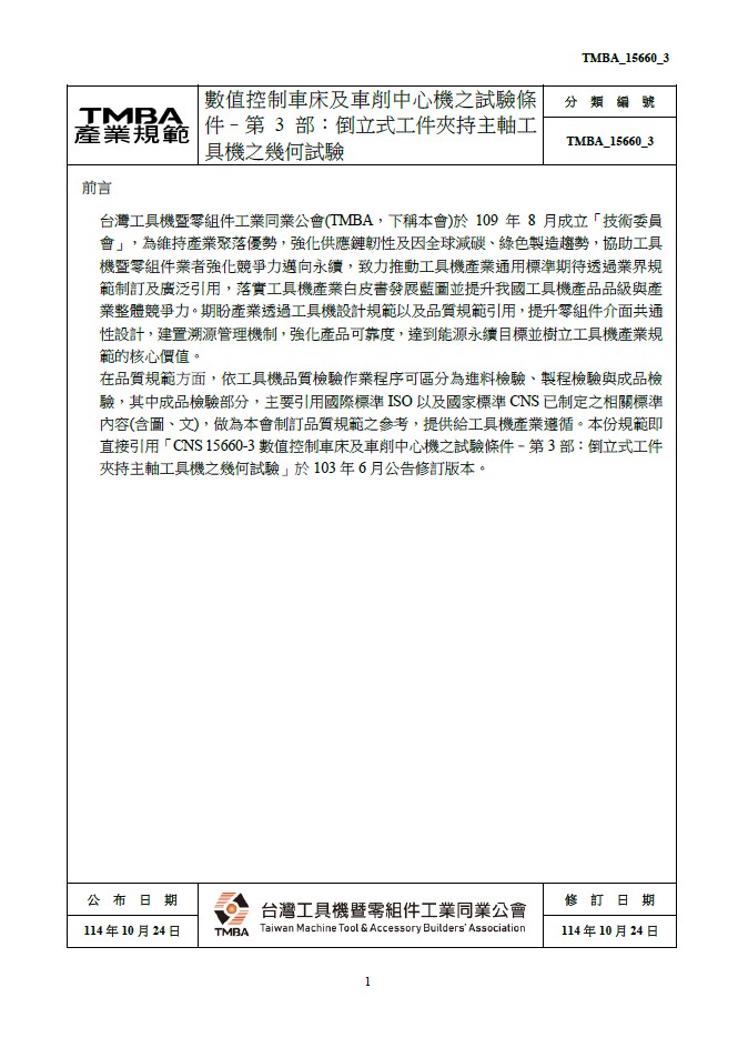 數值控制車床及車削中心機之試驗條件–第3 部:倒立式工件夾持主軸工具機之幾何試驗
